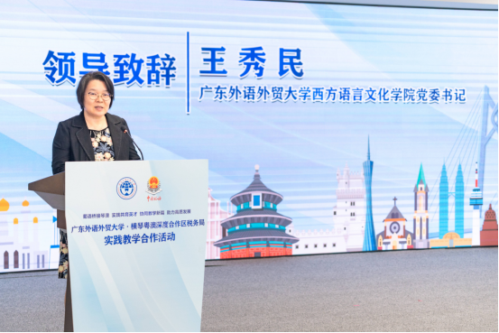 吴燕翔在发言中指出,中葡经贸中心的核心使命是搭建连接中国与葡语国家的一站式综合服务平台。在实践中发现,企业对既精通语言又熟悉经贸实务的复合型人才需求迫切。她表示,“广外在人才培养方面具有丰厚的底蕴和基础,合作区税务局在加强中国与葡语国家税务合作方面做出了重要贡献。”未来,中心愿积极研究建立人才培养、实践实训与就业输送的合作机制,联合企业设立专项实训或岗位,共同为青年人才提供更广阔的职业舞台。
